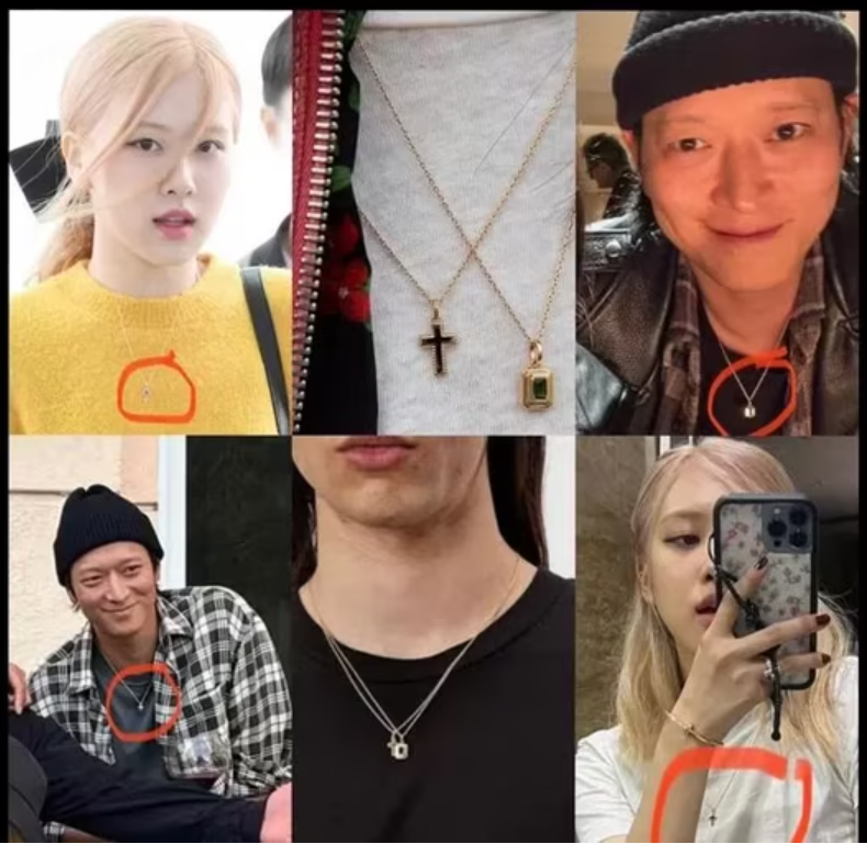 • 앞서 강동원과 로제가 커플 목걸이를 나눠 착용하고 커플룩을 입는 점