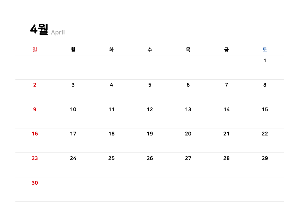 4월 달력 모음 (PDF 파일) 무료 다운로드