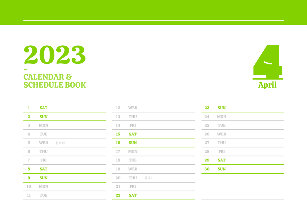 2023년 계묘년 4월 달력 무료 다운로드 파일 공유합니다.
