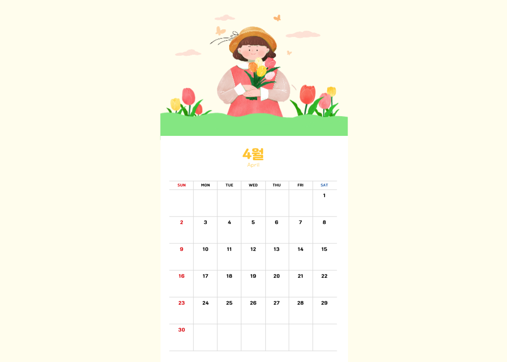 4월 달력 모음 (PDF 파일) 무료 다운로드