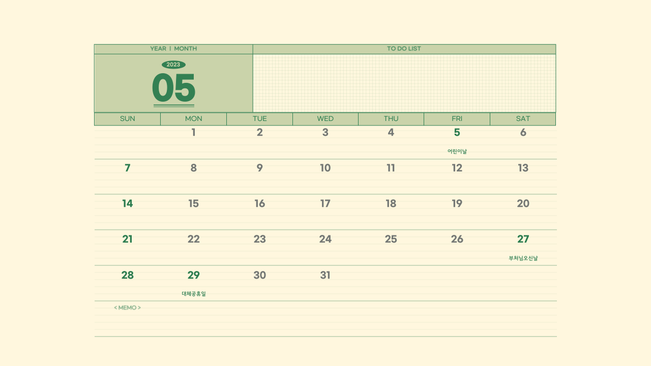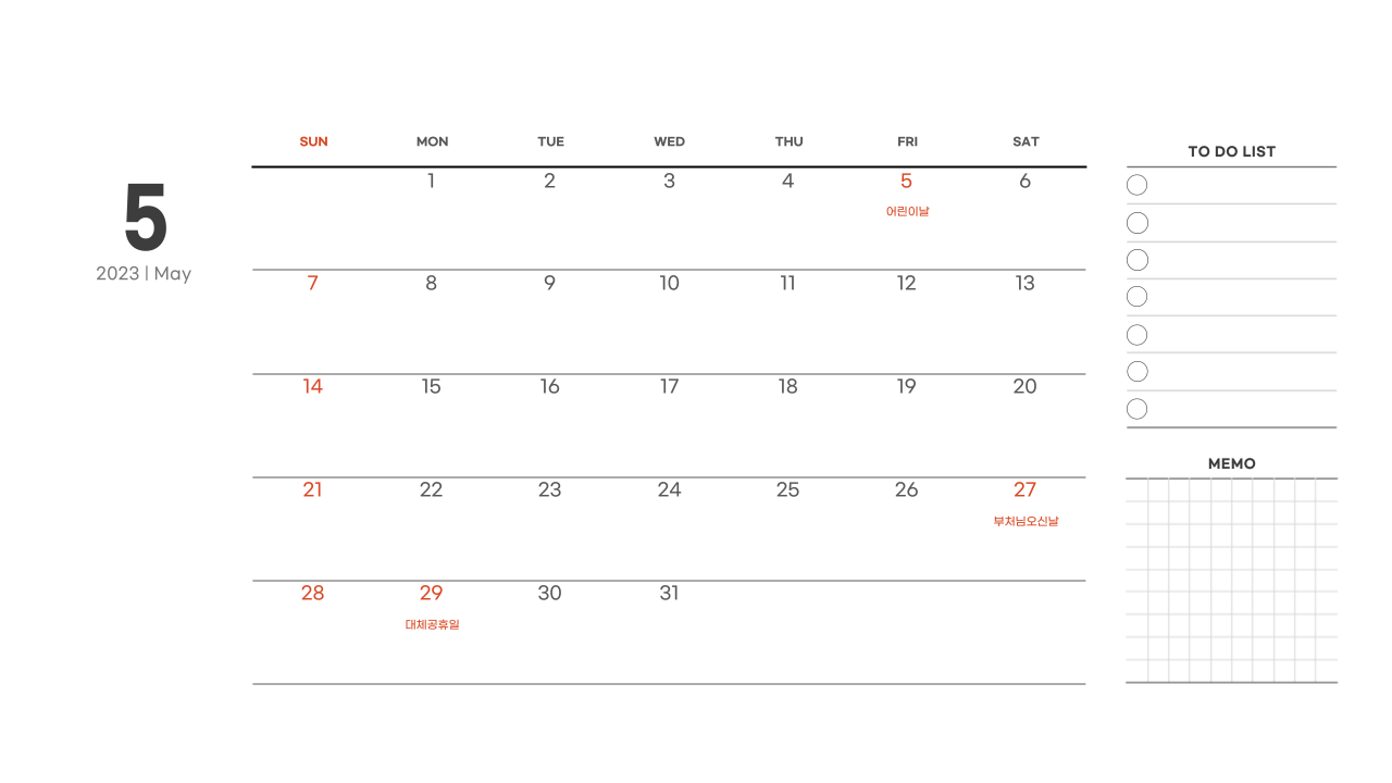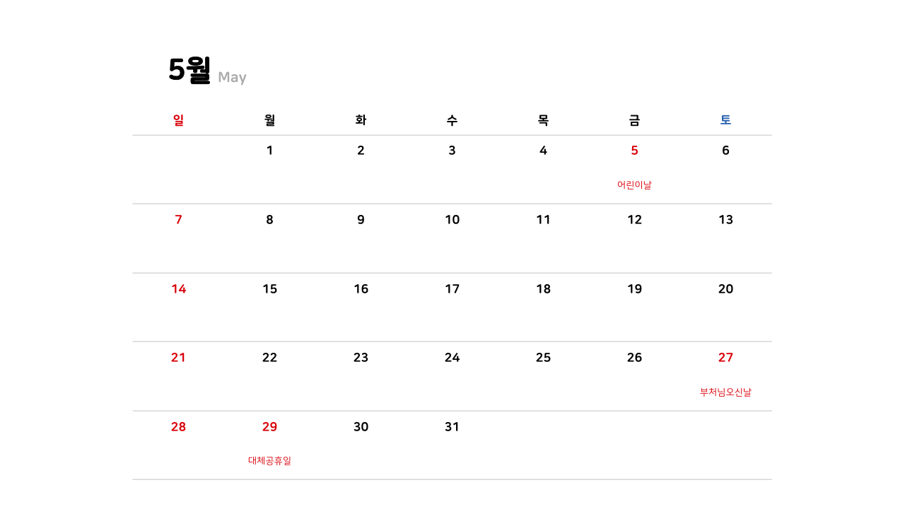 2023년 계묘년 5월 대체 공휴일 반영한 달력 무료 다운로드 파일 공유합니다.
