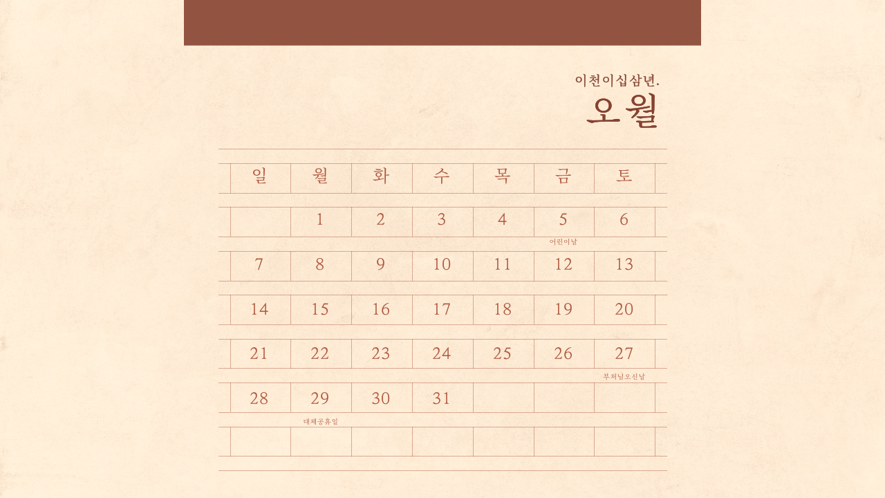 2023년 계묘년 5월 대체 공휴일 반영한 달력 무료 다운로드 파일 공유합니다.
